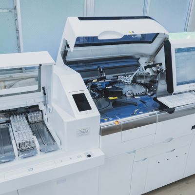主な仕事は、各種検体検査(血液学・生化学・免疫学・微生物学など)の実施です。正確な検査結果を報告するために、検査機器の日常点検・保守や精度管理、そして検査データの分析を徹底しています。また、報告した検査結果に対しては、必要に応じて医師へ検査情報を共有することで、診療や治療方針の決定をサポートします。